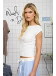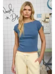 > Washed Boat Neck Short Sleeve Ribbed Knit Top